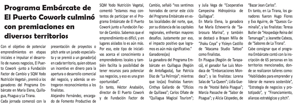 Programa Emárcate de El Puerto Cowork culminó con premiaciones en diversos territorios - (regionesnoticias.cl)