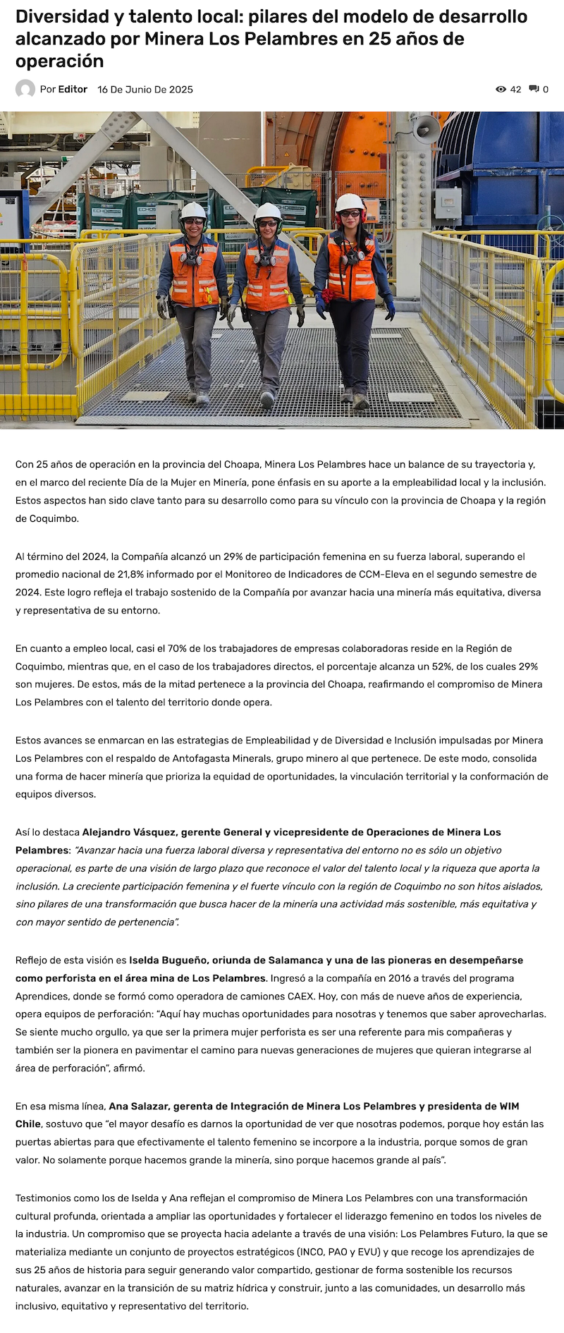 Diversidad y talento local: pilares del modelo de desarrollo alcanzado por Minera Los Pelambres en 25 años de operación - (laserenaonline.cl)