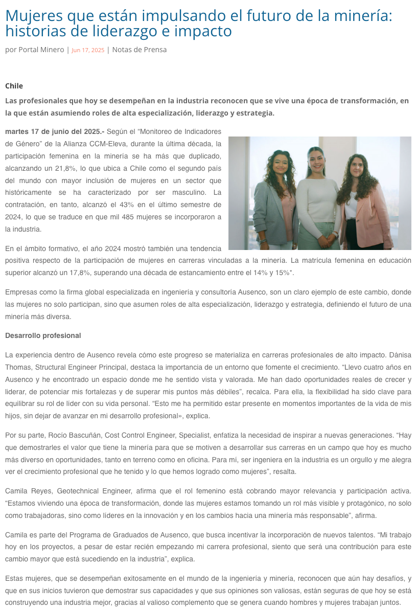 Mujeres que están impulsando el futuro de la minería: historias de liderazgo e impacto - (norteyenegia.cl)