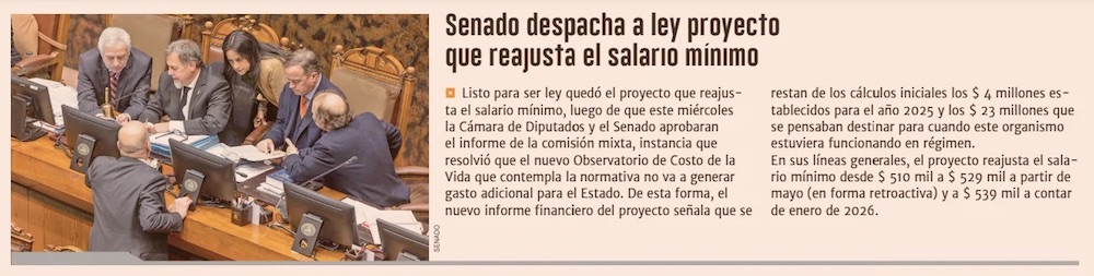 Congreso despacha a ley aumento del salario mínimo - (El Mercurio de Santiago)