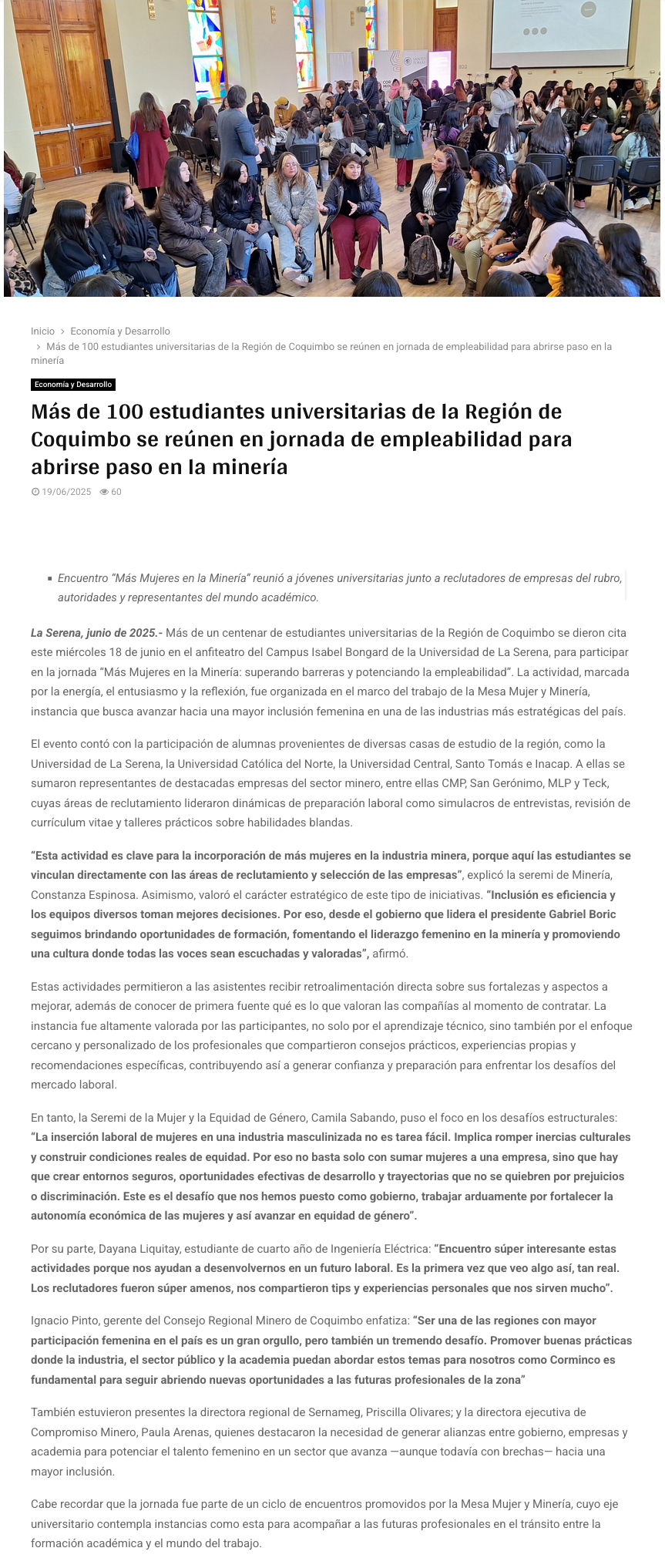Más de 100 estudiantes universitarias de la Región de Coquimbo se reúnen en jornada de empleabilidad para abrirse paso en la minería - (elserenense.cl)