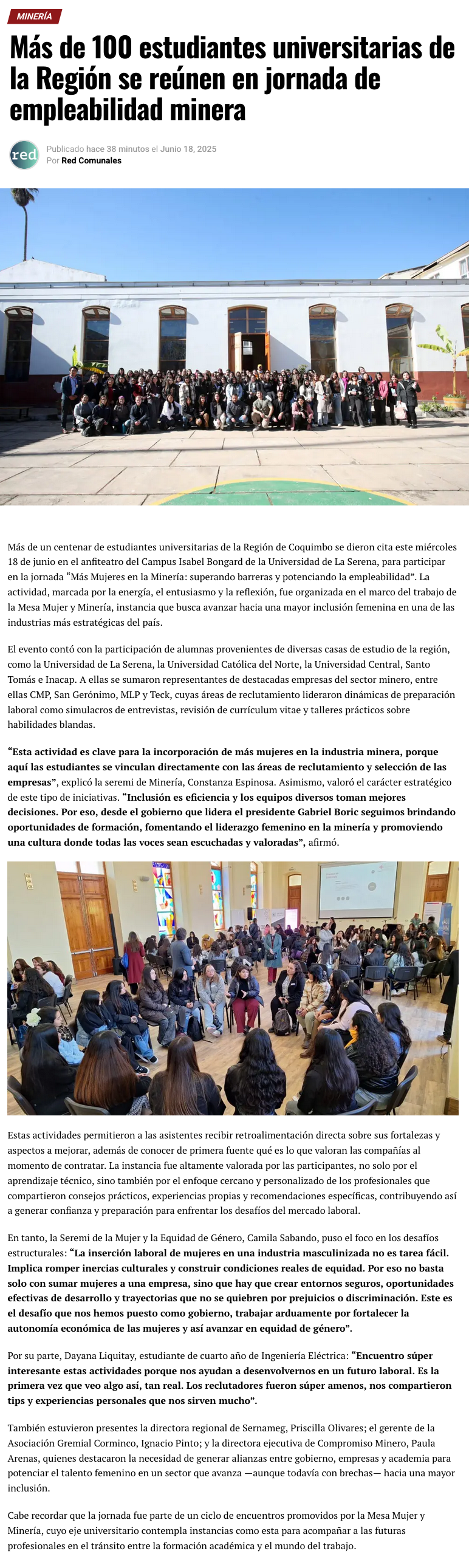 Más de 100 estudiantes universitarias de la Región de Coquimbo se reúnen en jornada de empleabilidad para abrirse paso en la minería - (radiocomunicativa.cl)