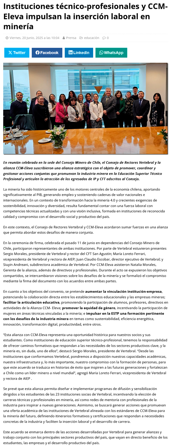 Instituciones técnico-profesionales y CCM-Eleva impulsan la inserción laboral en minería - (eldiariosantiago.cl)