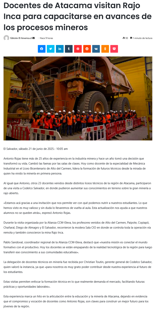 Docentes de Atacama visitan Rajo Inca para capacitarse en avances de los procesos mineros - (Maray Online)