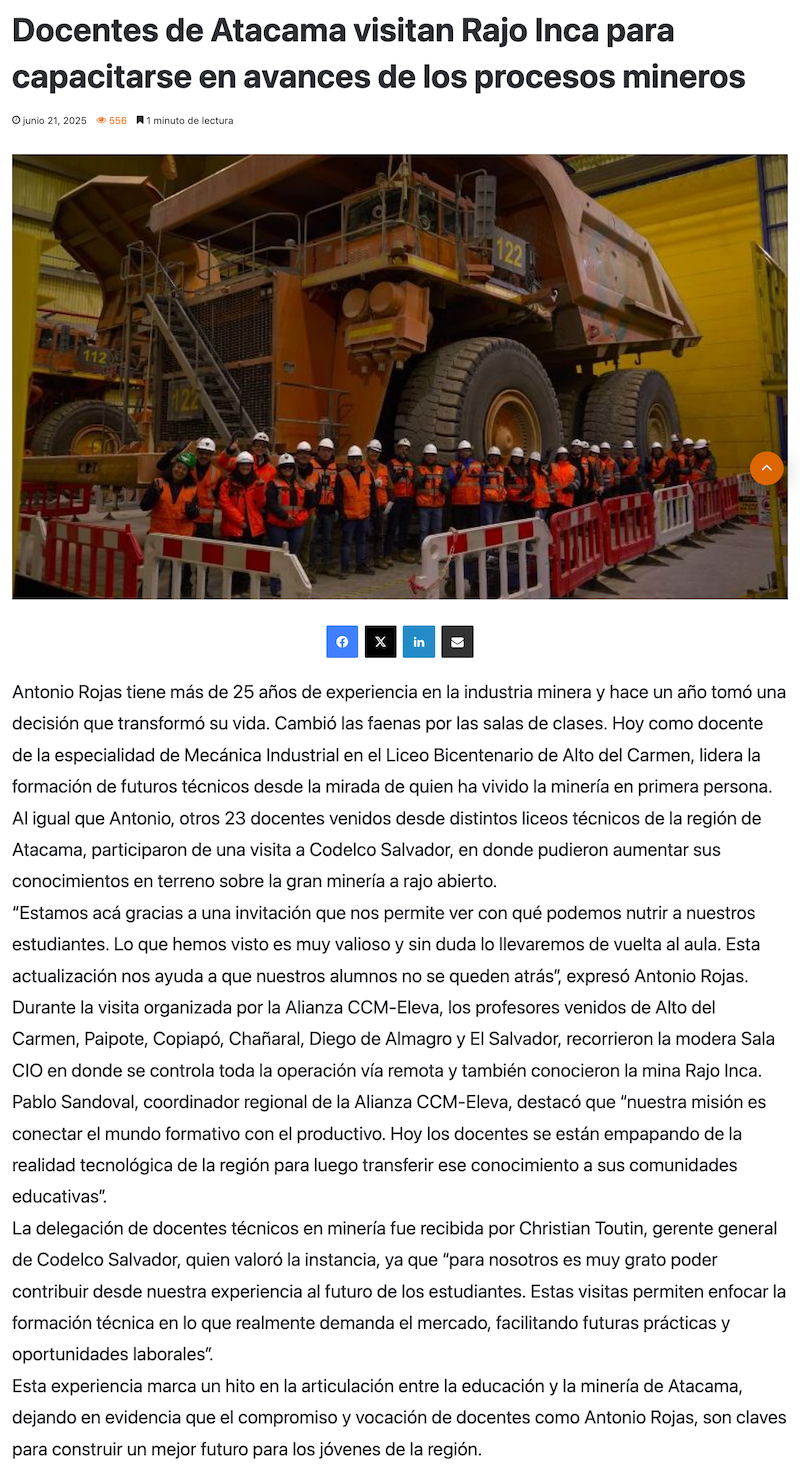 Docentes de Atacama visitan Rajo Inca para capacitarse en avances de los procesos mineros - (elamerica)