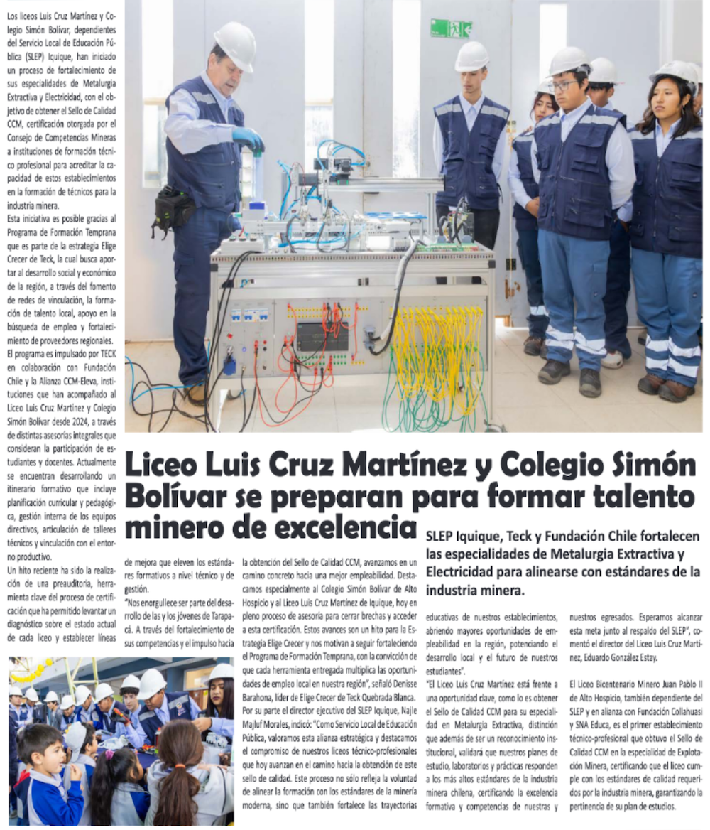 Liceo Luis Cruz Martínez y Colegio Simón Bolívar se preparan para formar talento minero de excelencia - (El Longino de Alto Hospicio)