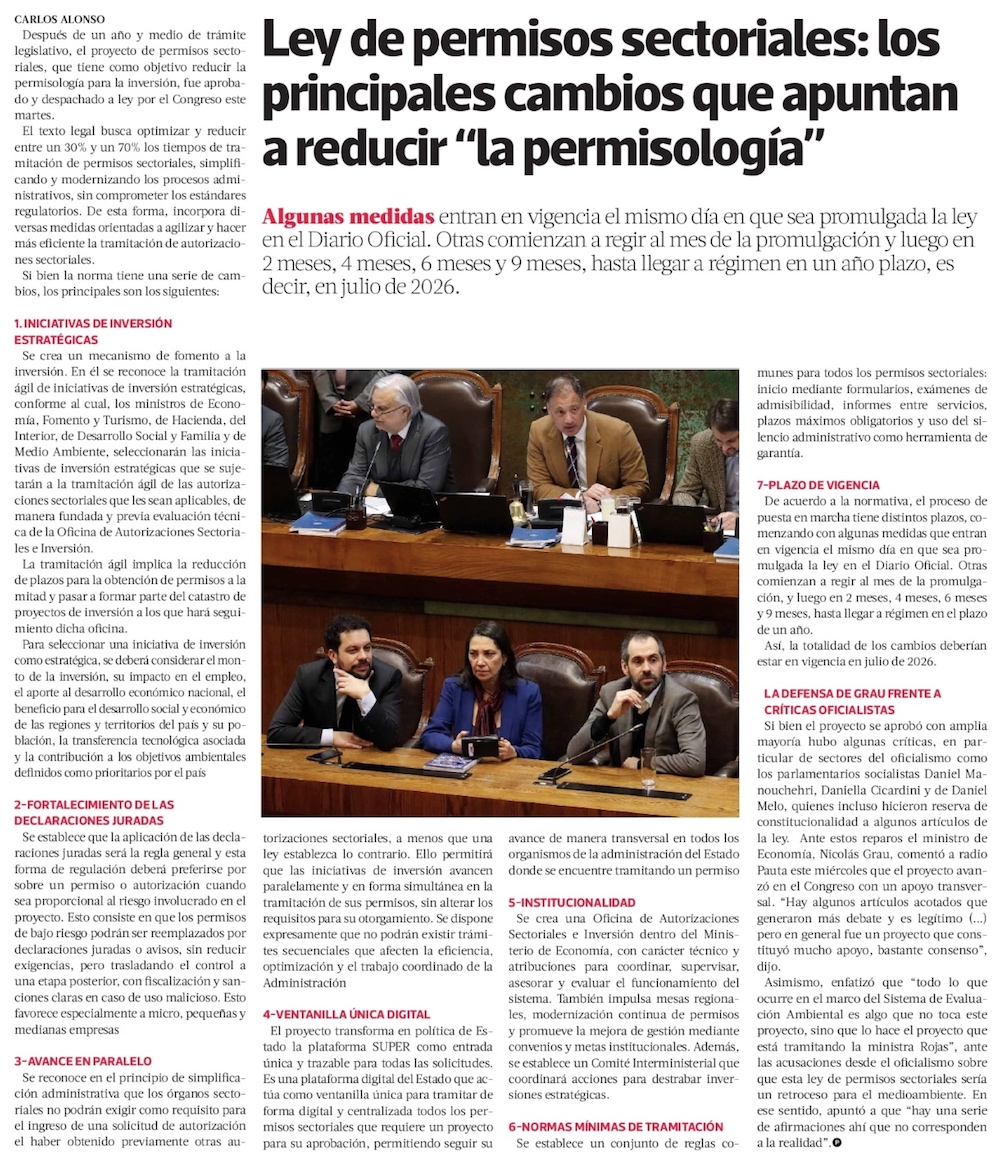 ¿Impulso acotado? Los desafíos por abordar que quedaron fuera de la reforma a la “permisología” - (El Mercurio de Santiago)