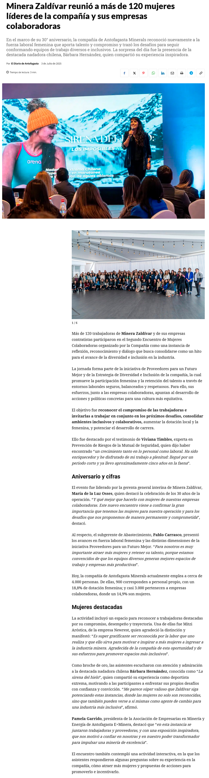 Minera Zaldívar reunió a más de 120 mujeres líderes de la compañía y sus empresas colaboradoras - (electromineria.cl)