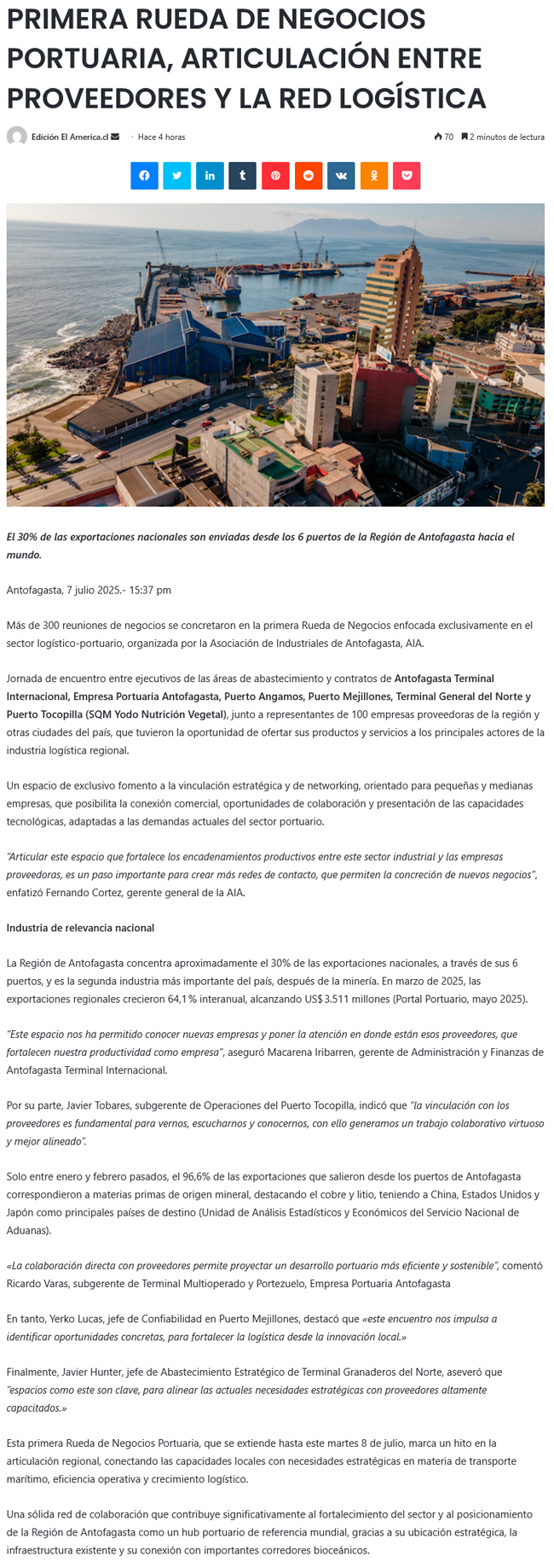 AIA realiza rueda de negocios portuaria con foco en la articulación entre proveedores y la red logística - (mch.cl)