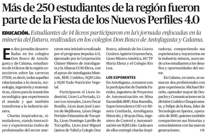 Más de 250 estudiantes de la región fueron parte de la Fiesta de los Nuevos Perfiles 4.0 - (El Mercurio de Calama)