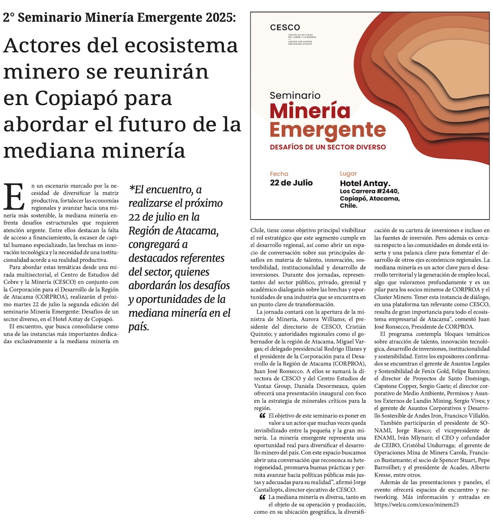 Actores del ecosistema minero se reunirán en Copiapó para abordar el futuro de la mediana minería - (Nostálgica Online)