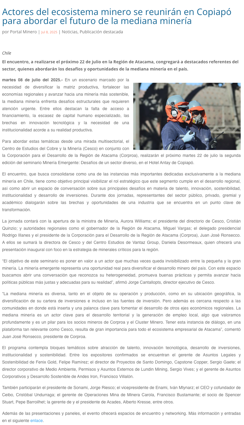 Minería Emergente: CESCO impulsa desde Copiapó un nuevo enfoque para el desarrollo minero en Chile - (Nostálgica Online)