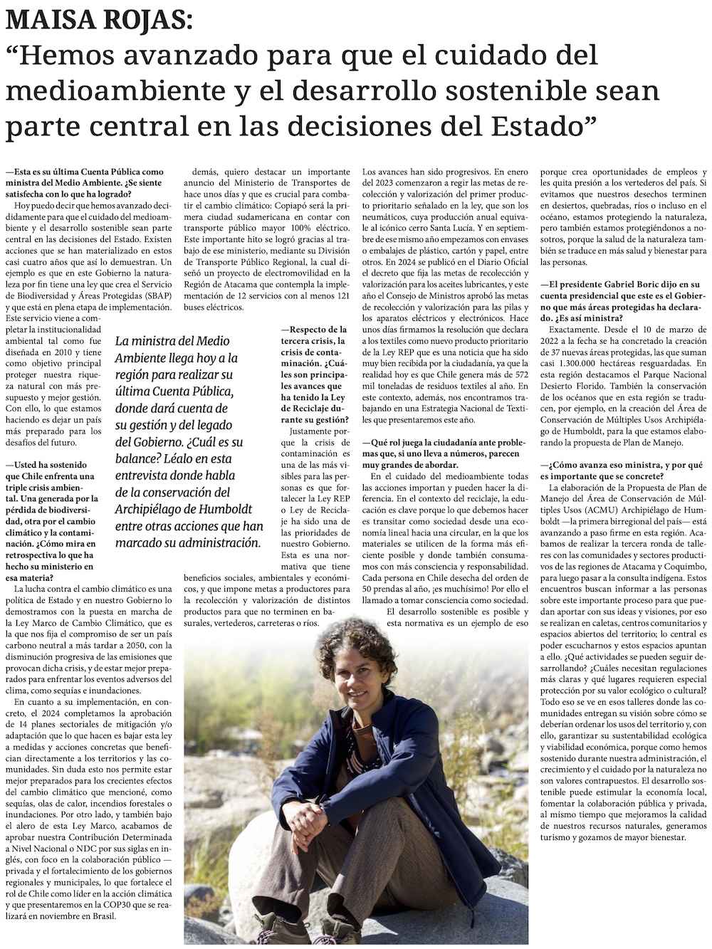 "Las regulaciones son clave para establecer las condiciones de cómo queremos desarrollarnos como país y para dar certezas tanto a inversionistas como a las comunidades" - (El Diario de Atacama)