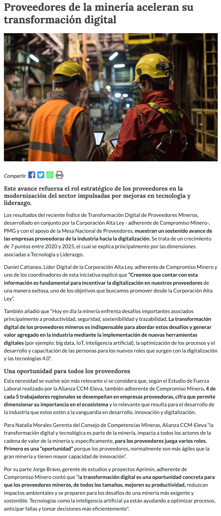 Proveedores de la minería aceleran su transformación digital y marcan tendencia en la industria - (tierramarillano.cl)
