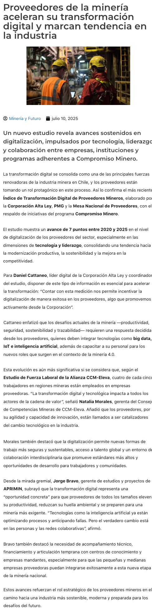 Proveedores de la minería aceleran su transformación digital y marcan tendencia en la industria - (tierramarillano.cl)