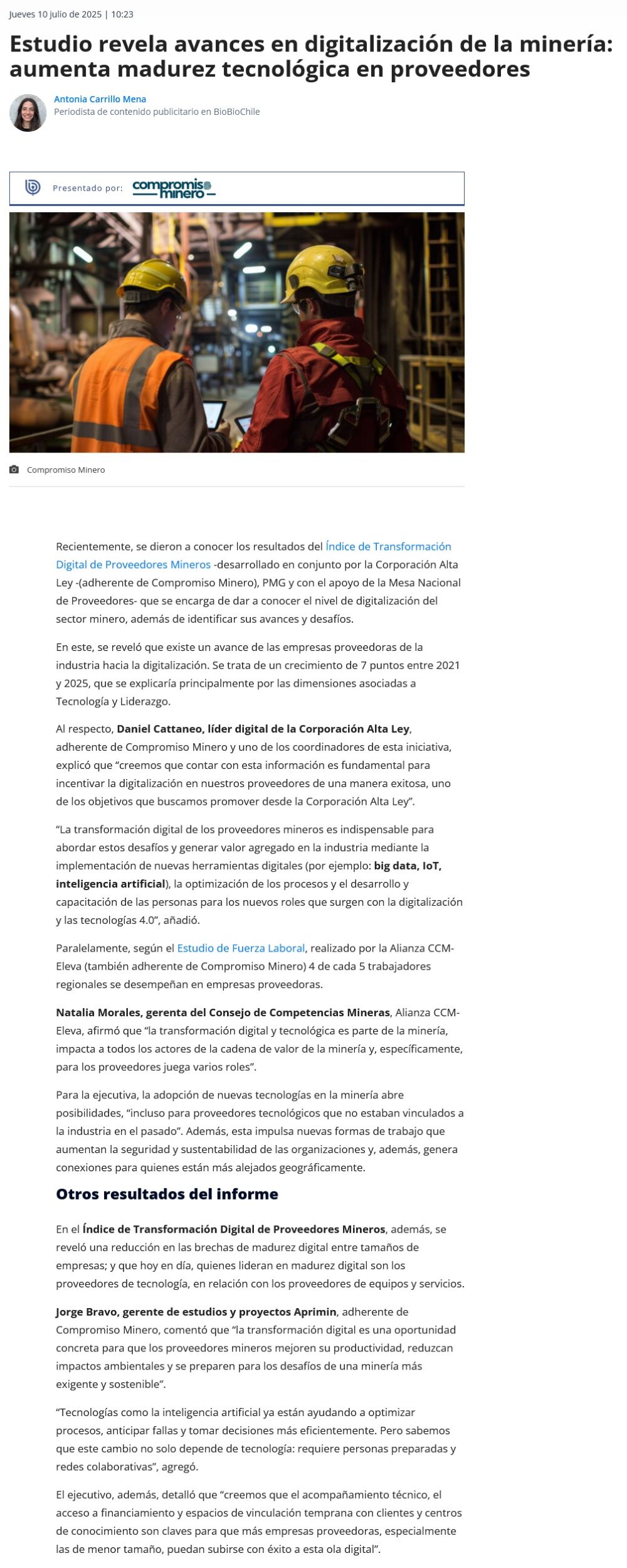 Proveedores de la minería aceleran su transformación digital y marcan tendencia en la industria - (tierramarillano.cl)