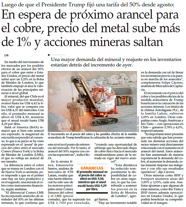 Alza en el precio del cobre y repunte de acciones mineras impulsan a la Bolsa de Londres a máximos históricos - (Diario Financiero)
