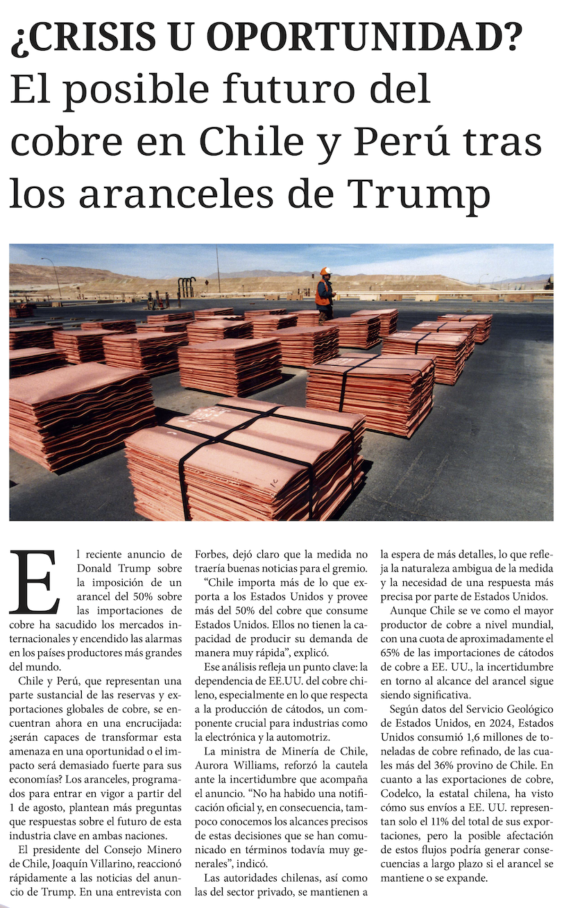 ¿Crisis u oportunidad? El posible futuro del cobre en Chile y Perú tras los aranceles de Trump - (biobiochile online)
