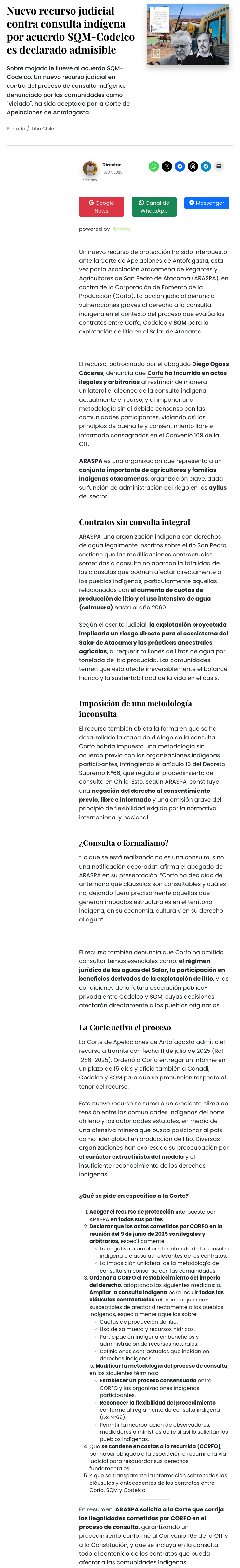 Tribunales declaran admisible recurso de protección contra Consulta Indígena por acuerdo SQM-Codelco - (elciudadano)