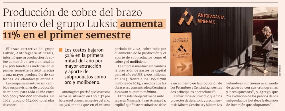 Antofagasta Minerals aumentó su producción - (La Estrella)