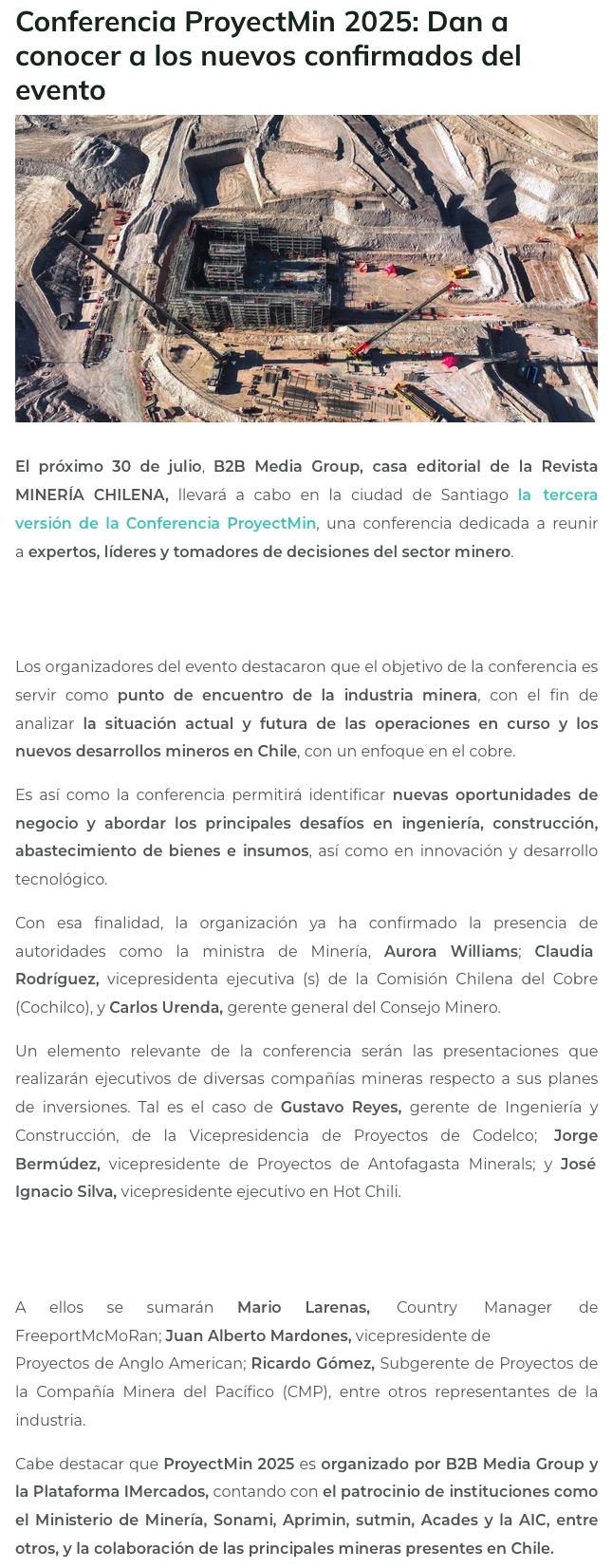 Conferencia ProyectMin 2025: Dan a conocer a los nuevos confirmados del evento - (mch.cl)