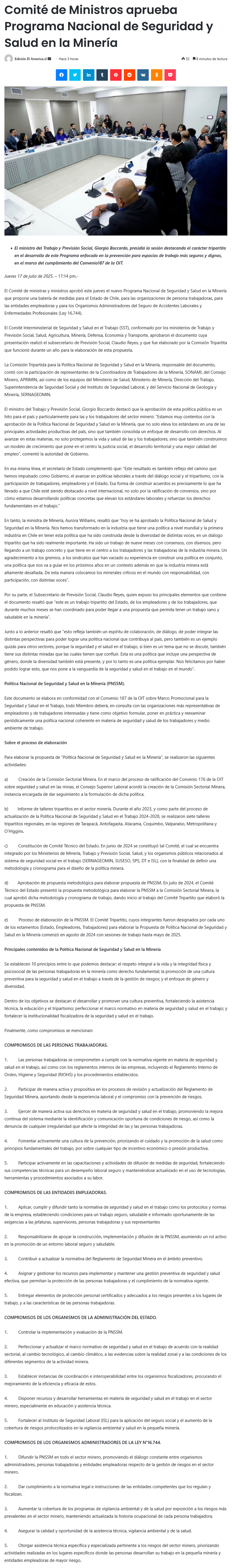 Gobierno aprueba Política Nacional de Seguridad y Salud en la Minería - (mch.cl)