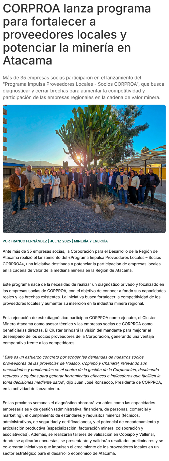 Corproa lanza programa de proveedores locales - (El Diario de Atacama)