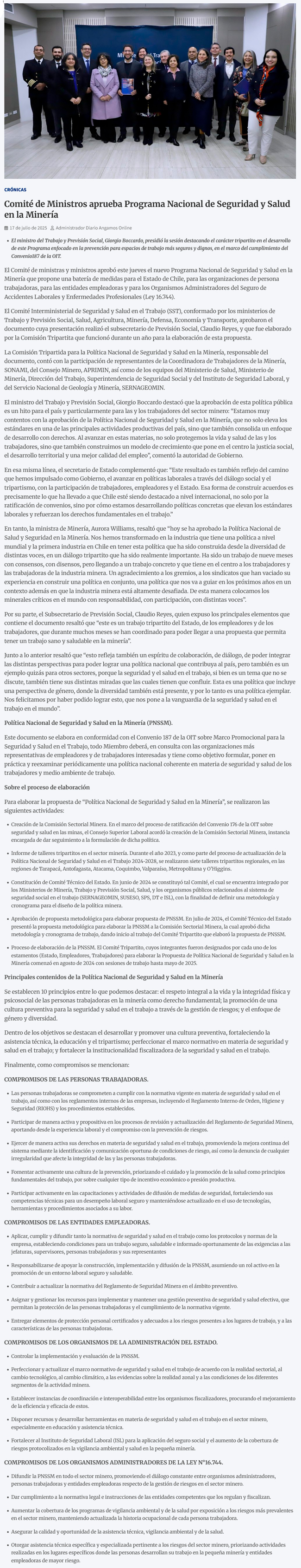 Comité de Ministros aprueba Programa Nacional de Seguridad y Salud en la Minería - (desiertofm.cl)