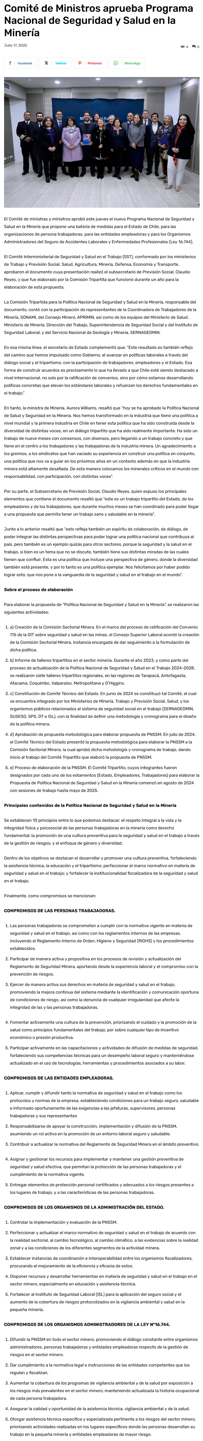 Gobierno aprueba Política Nacional de Seguridad y Salud en la Minería - (mch.cl)