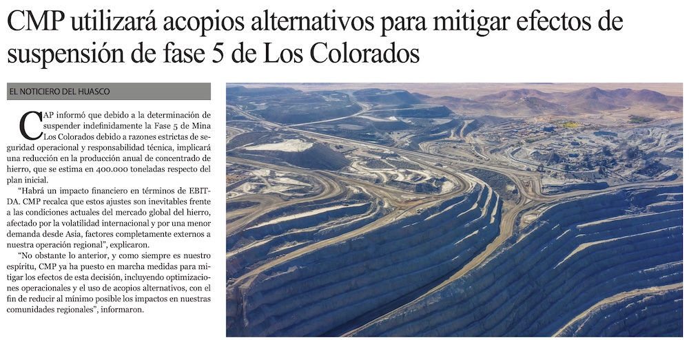 Suspensión indefinida de fase 5 de Los Colorados obliga a reducir plazas laborales en la provincia - (El Noticiero del Huasco)