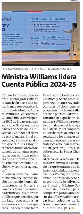 Ministra Williams entrega cuenta pública con foco en fomento a la inversión - (El Mercurio de Antofagasta)