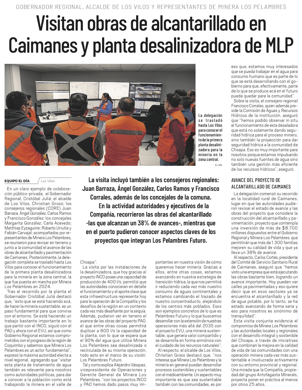 Visitan obras de alcantarillado en Caimanes y planta desalinizadora de Minera Los Pelambres - (La Región)
