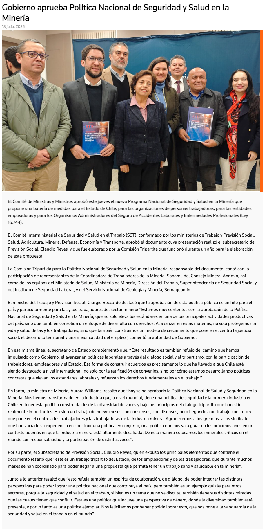 Chile aprueba histórica Política Nacional de Seguridad y Salud en la Minería - (portalminero)