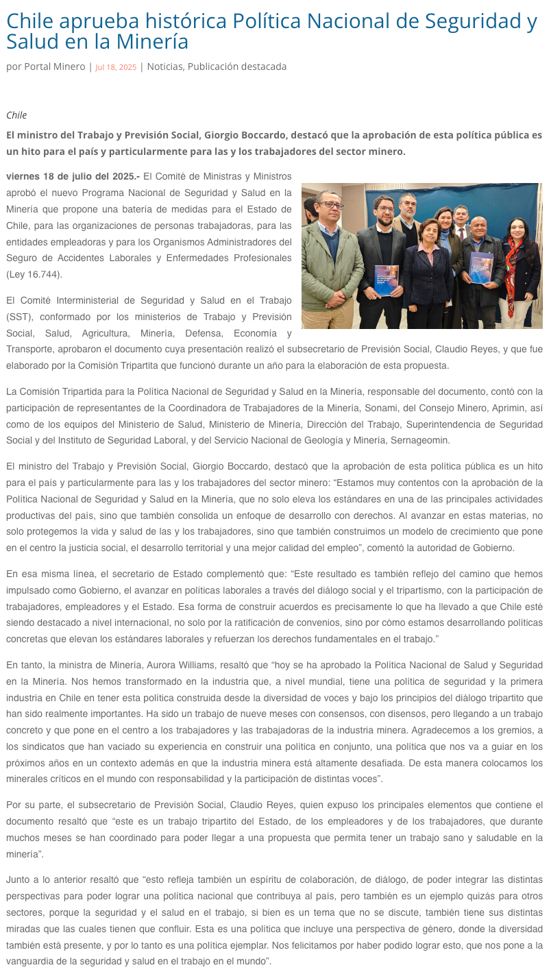 Aprueban un nuevo programa nacional de seguridad y salud para trabajadores de la minería - (revistacrisol.cl)