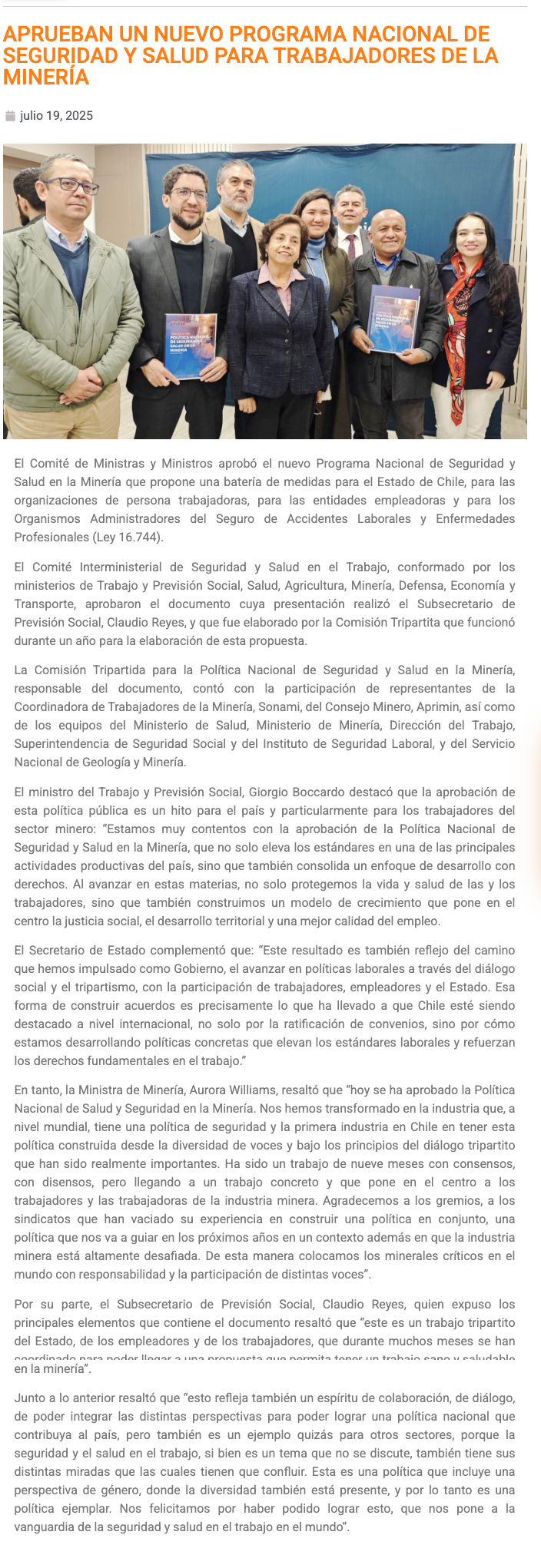 Chile aprueba histórica Política Nacional de Seguridad y Salud en la Minería - (portalminero)