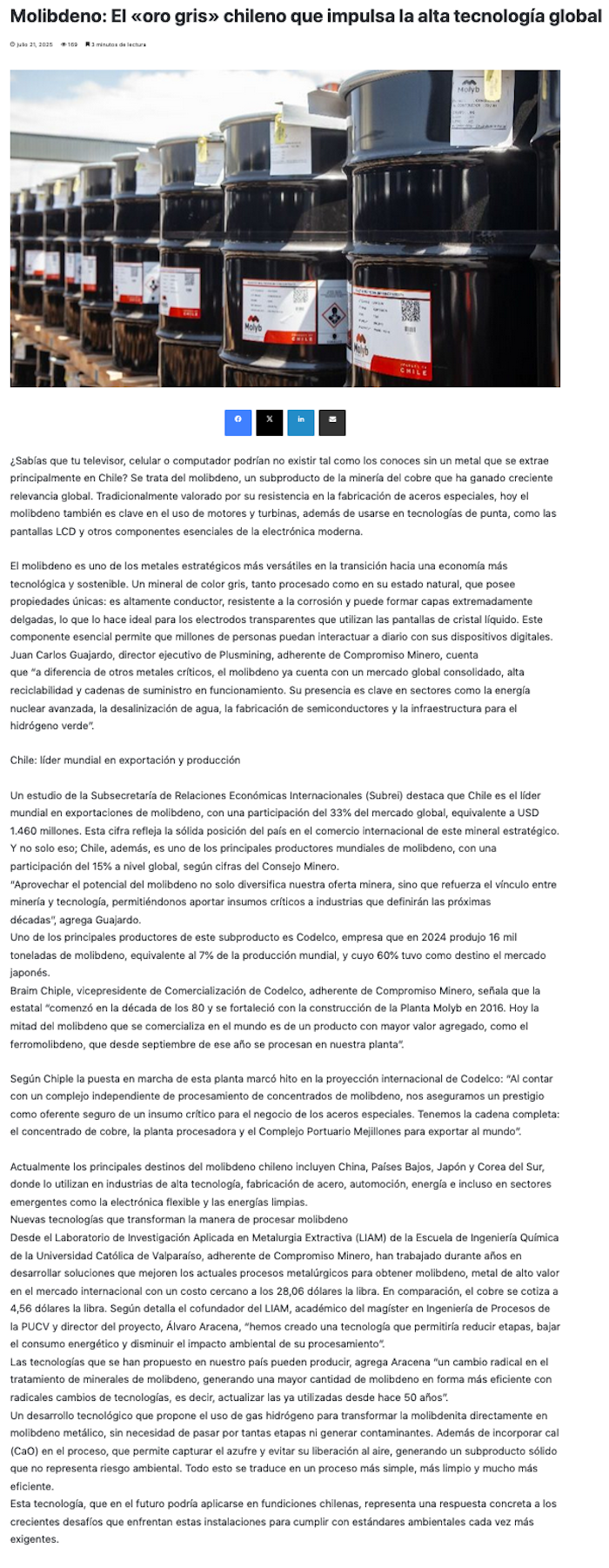 Molibdeno: El “oro gris” chileno que impulsa la alta tecnología global - (atacamaenlinea.cl)