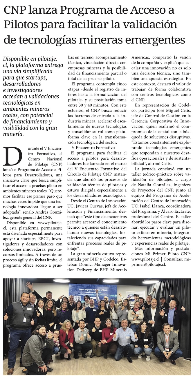 CNP lanza Programa de Acceso a Pilotos para facilitar la validación de tecnologías mineras emergentes - (elamerica)