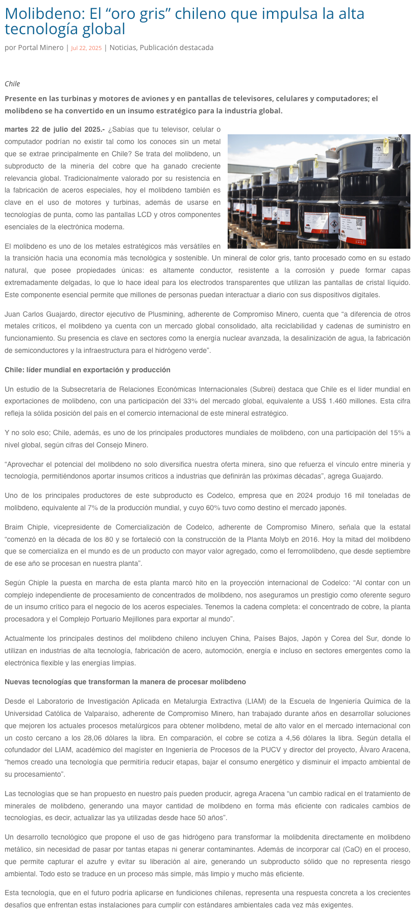 Molibdeno: el “oro gris” chileno subproducto del cobre que impulsa la alta tecnología global - (revistacrisol.cl)