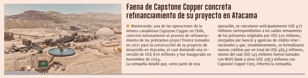 Mantoverde concreta proceso de refinanciamiento para avanzar en proyectos en Atacama - (mch.cl)