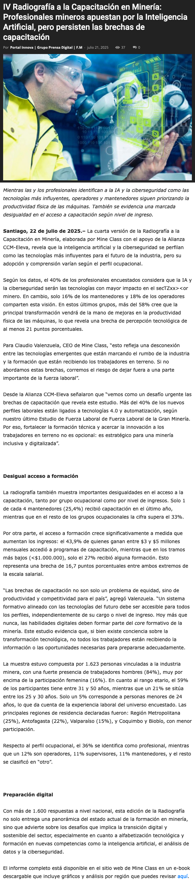 V Radiografía a la Capacitación en Minería: Profesionales mineros apuestan por la Inteligencia Artificial, pero persisten las brechas de capacitación - (portalminero)