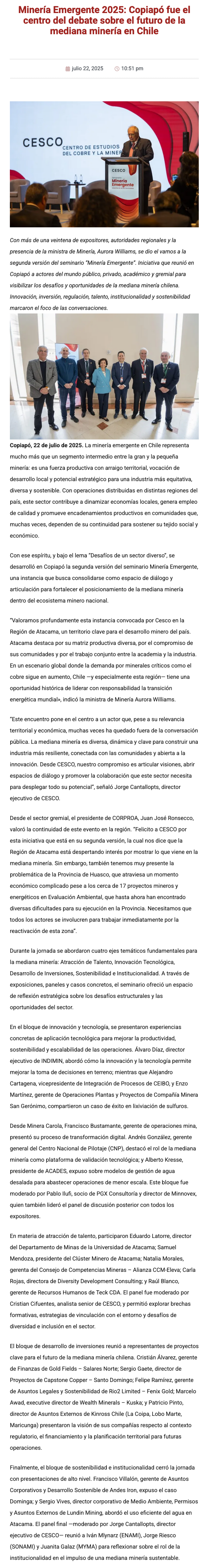 Minería Emergente 2025: Copiapó fue el centro del debate sobre el futuro de la mediana minería en Chile - (Nostálgica Online)