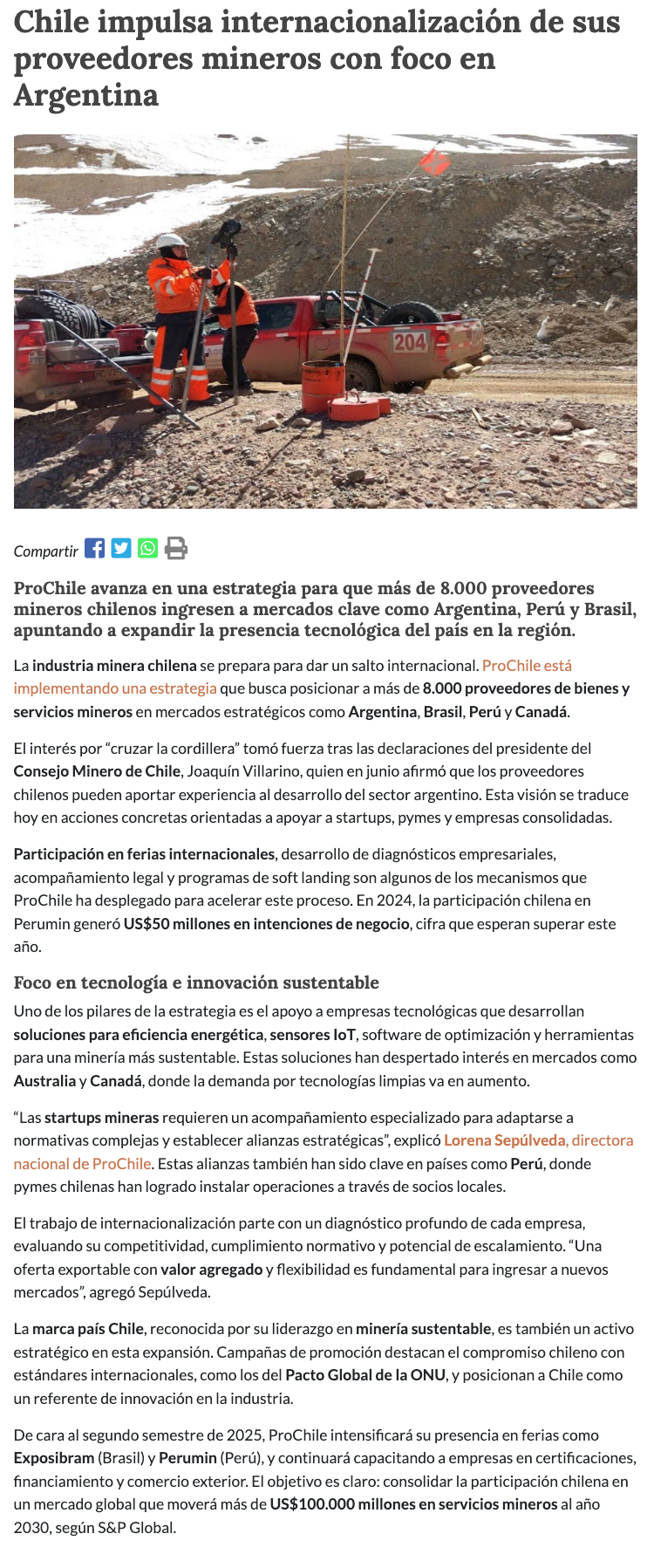 Chile activa ofensiva regional para posicionar a 8.000 proveedores mineros en Argentina - (redimin)