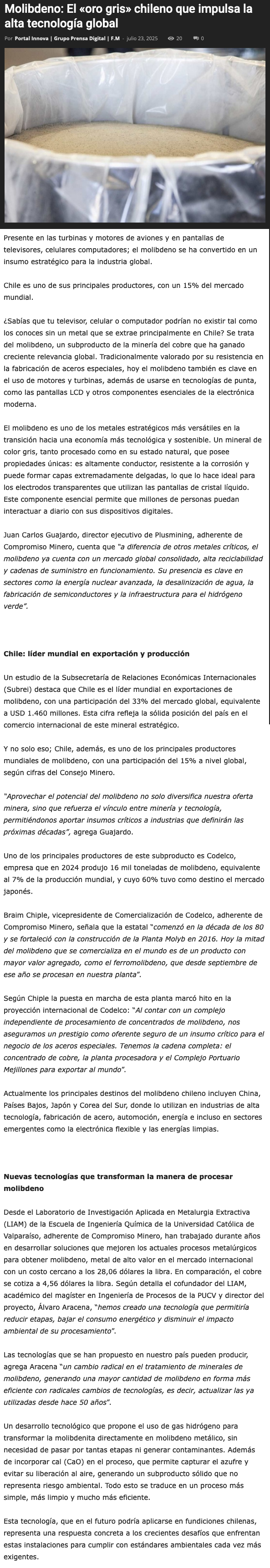 Molibdeno: El «oro gris» chileno que impulsa la alta tecnología global - (guiaminera.cl)