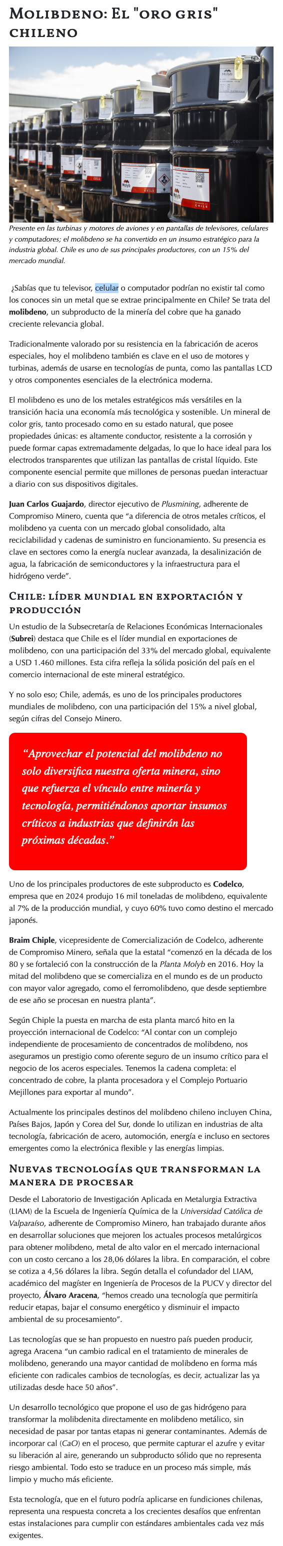 Molibdeno: El “oro gris” chileno que impulsa la alta tecnología global - (minerialocal.cl)