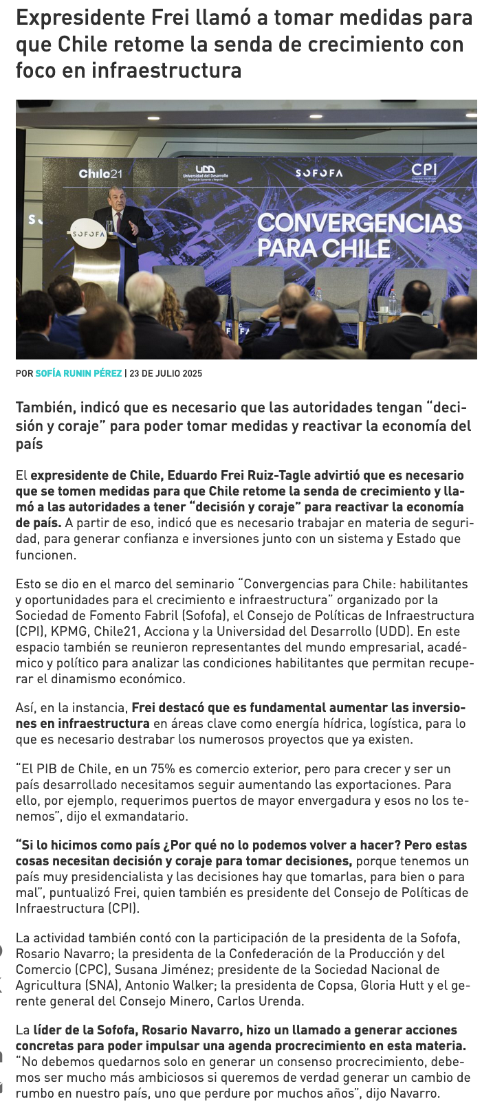 Expresidente Frei y Rosario Navarro hacen un llamado a impulsar una agenda procrecimiento con foco en infraestructura - (Adprensa.cl)