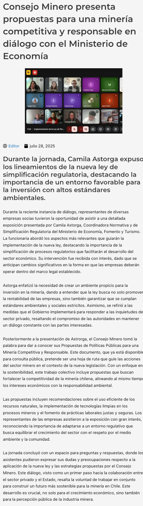 Consejo Minero plantea concentrar la mirada en los permisos de las operaciones del día a día - (electromineria.cl)