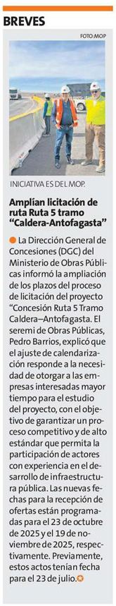 Concesión tramo Caldera-Antofagasta: MOP amplía por tres meses el proceso de licitación - (timeline)