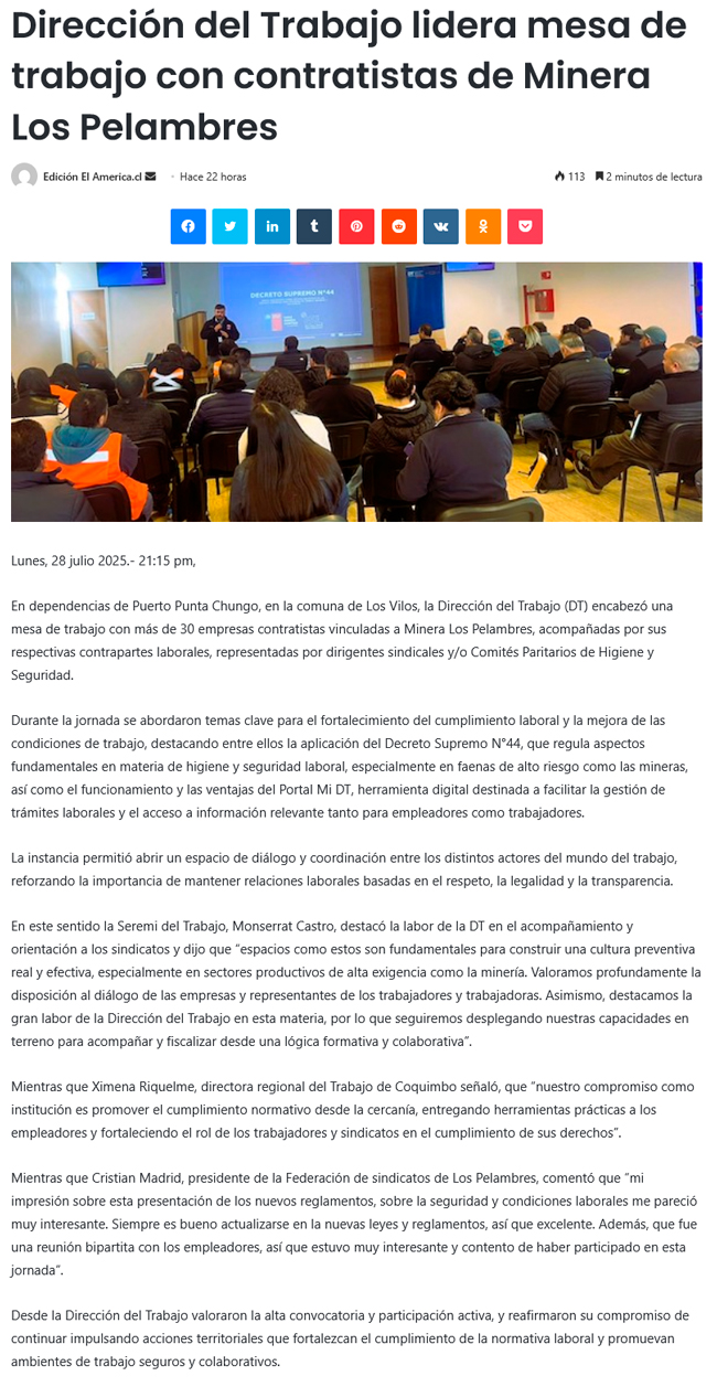 Antofagasta Minerals se propone superar el 40% de mano de obra local en la región - (El Mercurio de Calama)