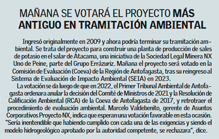 Proyecto de sales de potasio listo para ser votado en Antofagasta - (El Mercurio de Antofagasta)