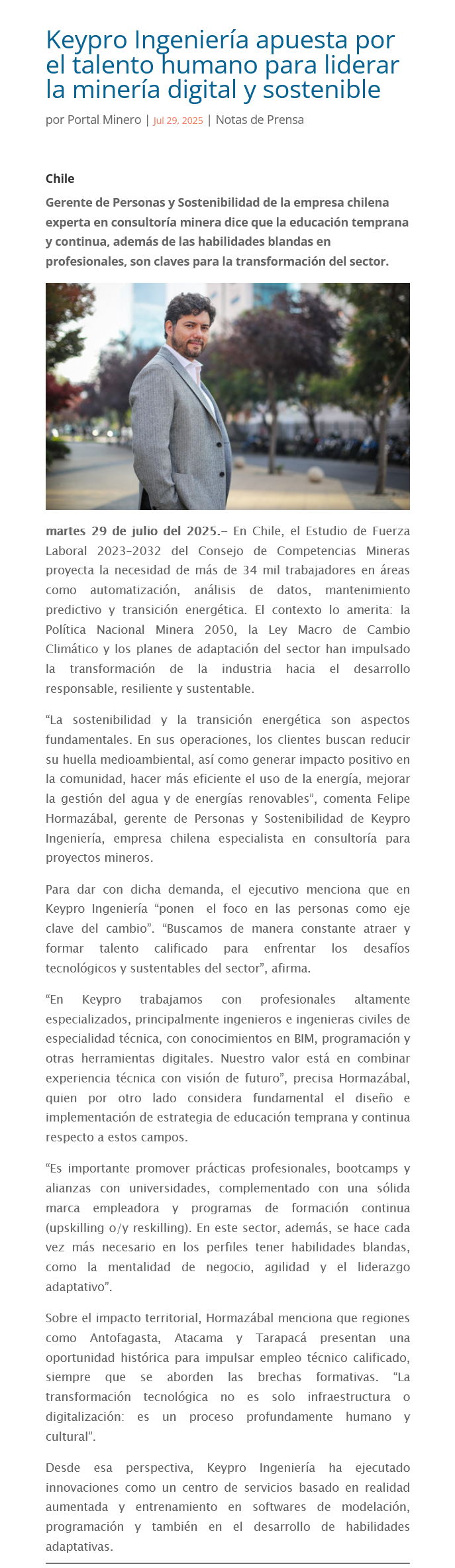 Keypro Ingeniería apuesta por el talento humano para liderar la minería digital y sostenible - (guiaminera.cl)